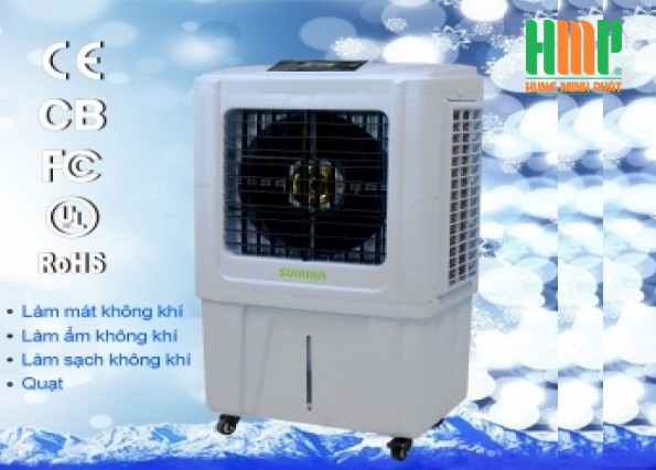- SUMIKA D 900 có công suất 280W và lưu lượng gió 9000m3/h bên cạnh đó thùng chứa 90 lít giúp chứa nước nhiều hơn để làm mát.
