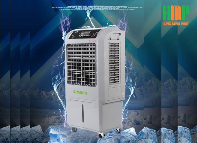 - SUMIKA D40A có công suất 150W và lưu lượng gió 4500m3/h bên cạnh đó thùng chứa 20 lít giúp chứa nước nhiều hơn để làm mát.