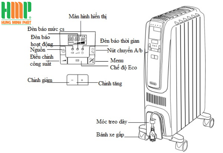 8. Một loại dầu đặc biệt với lượng vừa đủ đã được cho vào máy sưởi. Nếu máy bị dò rỉ dầu, vui lòng liên hệ nhà sản xuất hoặc nhân viên bảo hành vì khi sửa máy sẽ phải mở bình dầu.