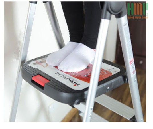 • Thang ghế Hakachi HL-04 có bậc trên cùng thiết kế rộng, giúp người sử dụng có thể đứng vững chắc mà không cần người giữ.
