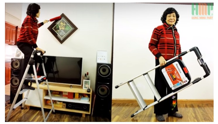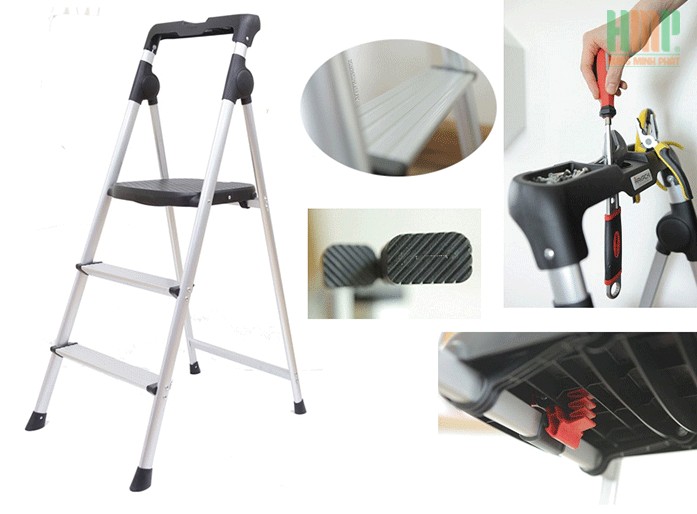 • Thiết kế 4 bậc thang giúp bạn dễ dàng vươn cao và sử dụng cho nhiều mục đích. Đồng thời, với thiết kế gọn nhẹ, dễ thao tác và gấp gọn sau khi sử dụng, giúp tiết kiệm diện tích cất trữ.