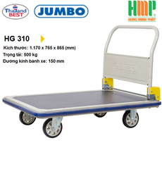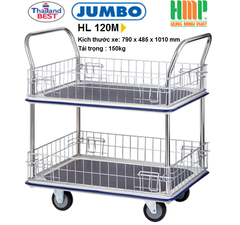Xe đẩy tay Jumbo là sản phẩm thuộc thương hiệu nổi tiếng tại Thái Lan, sản xuất 100% theo dây chuyền và tiêu chuẩn Châu Âu. Được người dùng ưa chuộng bởi thiết kế thân thiện và dễ di chuyển. Kiểu dáng và mẫu mã đa dạng, gọn nhẹ, chắc chắn và an toàn. Xe đẩy chắc chắn, sử dụng bền lâu. Giúp vận chuyển hàng hoá lớn.