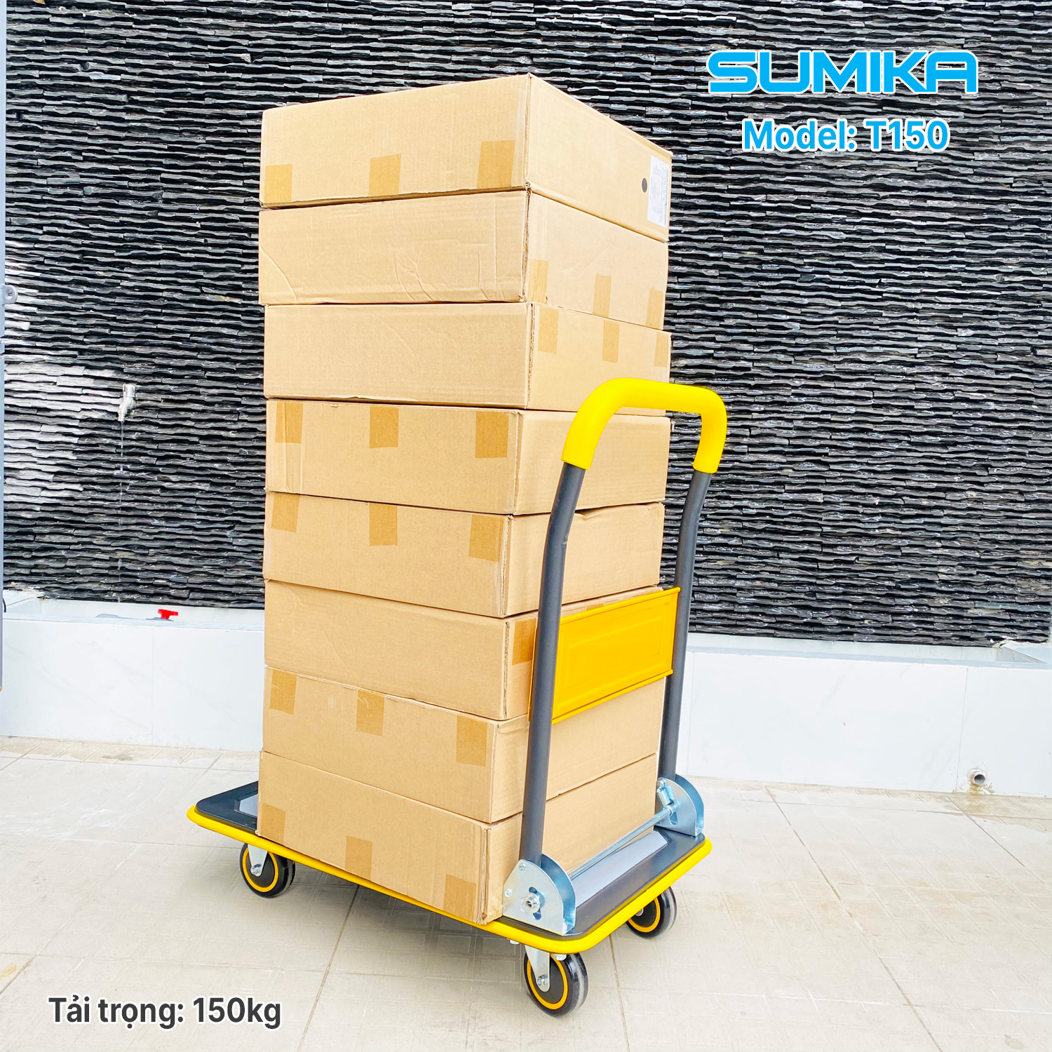 Xe đẩy hàng sàn thép Sumika T150 là sản phẩm thuộc thương hiệu nổi tiếng tại Trung Quốc, sản xuất 100% theo dây chuyền và tiêu chuẩn Châu Âu. Được người dùng ưa chuộng bởi thiết kế thân thiện và dễ di chuyển. Kiểu dáng và mẫu mã đa dạng, gọn nhẹ, chắc chắn và an toàn. Xe đẩy chắc chắn, sử dụng bền lâu. Giúp vận chuyển hàng hoá lớn.